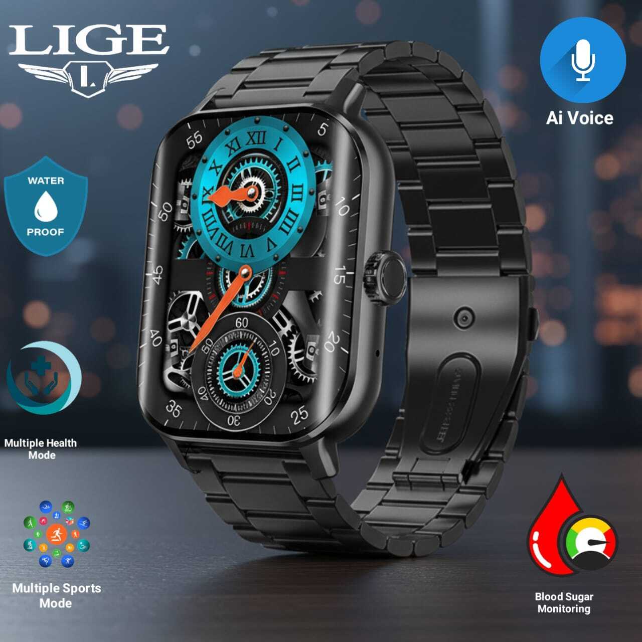 The Main Function: Custom Wallpaper, Bluetooth Call, Music Control, Social APP Message Reminder, Incoming Call Reminder, Text Message Reminder, Heart Rate, Blood Pressure, Blood Oxygen Multi-Exercise, Alarm Clock Reminder, Sedentary Reminder, Search For Mobile Phone, Music Playback, Stopwatch