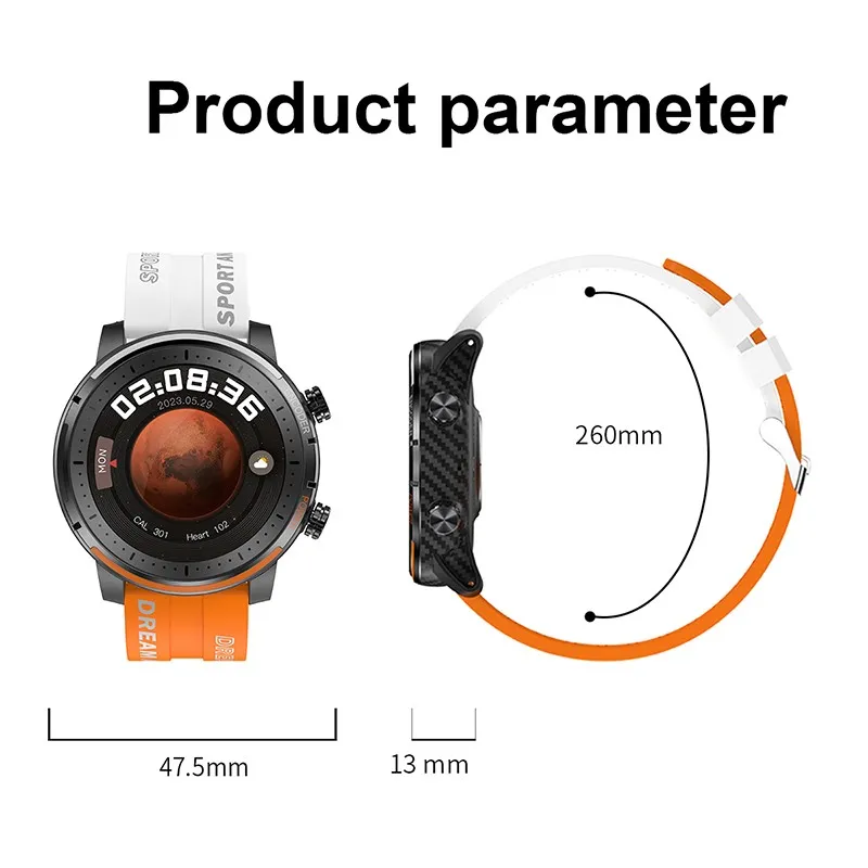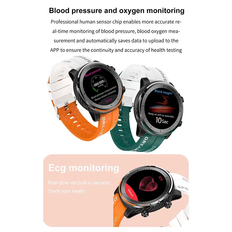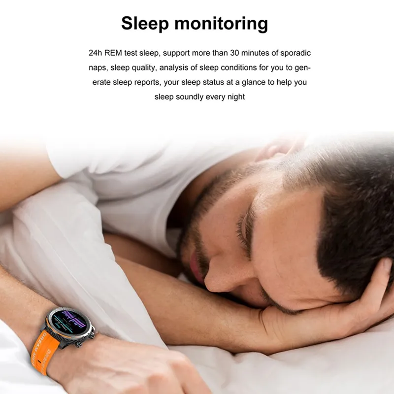 Fitness & Wellness: Blood Oxygen, Blood Pressure, Sedentary Reminder, Pedometer, Heart Rate Monitor, Sleep Tracker, Activity Tracker Features: Hands-Free Calls, Waterproof, Long Standby, Custom Watch Face, Step Tracker, Camera Control, Media Control